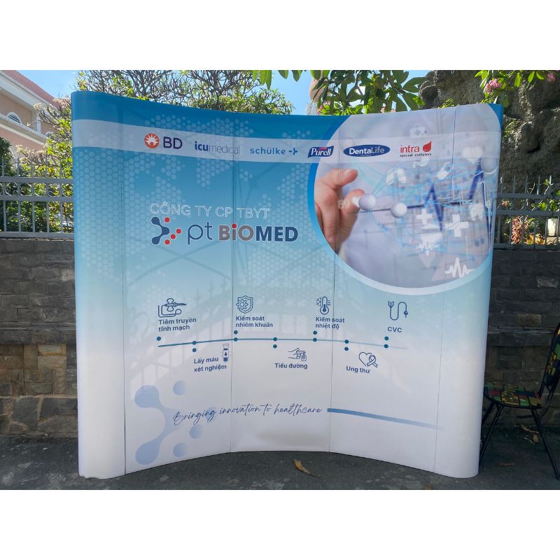 Nếu bạn cần một giải pháp hoàn hảo cho background sân khẩu một buổi tiệc tất niên, hay một chương trình ra mắt sản phẩm... mà không muốn mất nhiều thời gian cho việc lắp đặt một sân khấu truyền thống thì backdrop di động là sản phẩm tuyệt vời dành cho bạn.