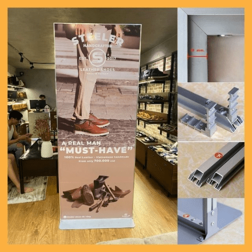 Standee chân sắt khung nhôm sang trọng là sản phẩm mới và cao cấp nhất trên thị trường hiện nay.