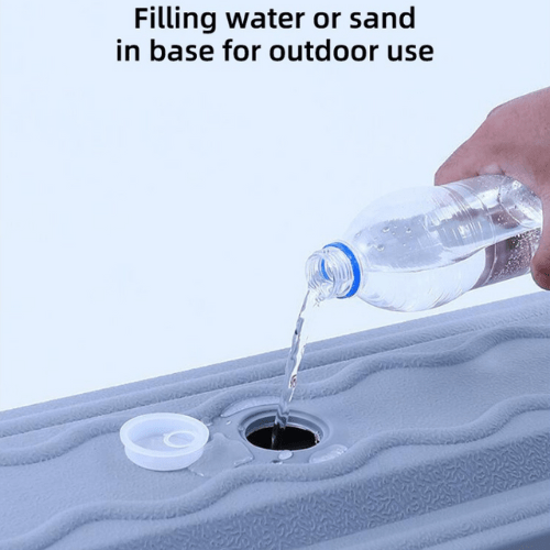 Standee đế nước kiểu cửa có thể gấp xếp được dùng để treo tấm poster quảng cáo. Đế được thiết kế rỗng, có thể để nước hoặc cát giúp standee đứng vững ở những nơi có gió, là lựa chọn hoàn hảo cho trưng bày ngoài trời, bên ngoài cửa hàng.