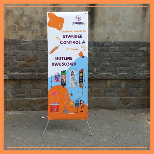 Standee chữ X điều chỉnh được kích thước hay còn gọi là khung treo banner là sản phẩm dùng cho các hoạt động quảng cáo di động trong nhà tại các showroom, hội thảo, triển lãm.